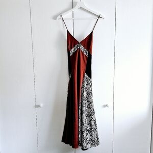 Step out in style with this elegant rust and black midi dress. Perfect for any occasion, this dress combines a chic design with comfort.