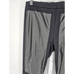 Trouve Gray & Black Colorblock Faux Leather Hybrid Low-Rise Moto Leggings Size L