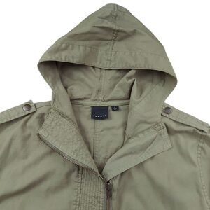 Trouve Hooded Utility Jacket Womens Small Green Oversized Full Zip Cotton