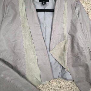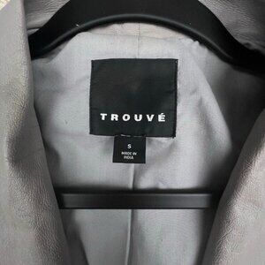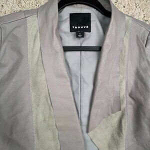 Trouve Leather Jacket Moto Biker Gray Solid Long Sleeve Open Front Genuine Small
