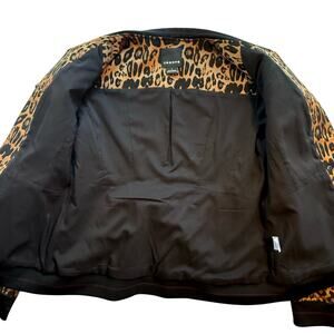 Trouve Leopard Peplum Jacket Women’s Large Animal Print Lined Zip