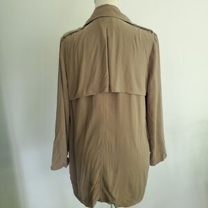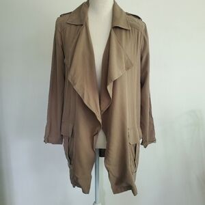 Trouve olive/khaki green open drape front lightweight jacket with pockets. Relaxed fit can fit multiple sizes.