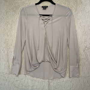 Trouve Long Sleeve Tie / Lace-Up Neckline Blouse Beige Sz XS