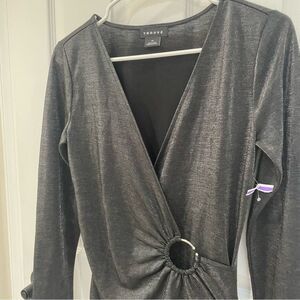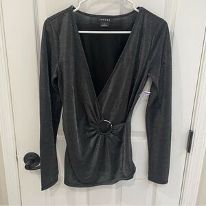 Trouve Metallic Black Faux Wrap Women’s Top Size XS