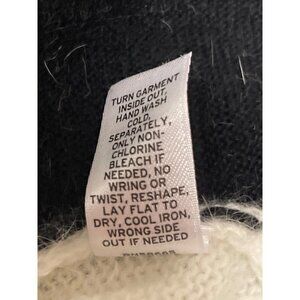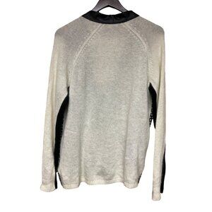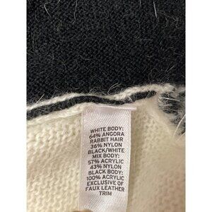 Trouve White Black Angora Faux Leather Trim Cardigan Sweater Women's Size Medium