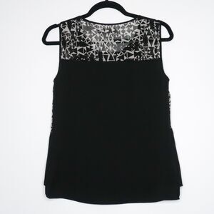 Trouve Womens Sleeveless Blouse Size XS‎ Black Geometric Sheer Office Career