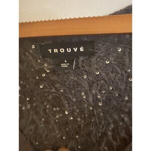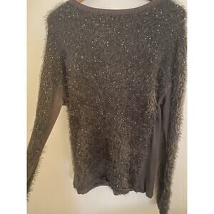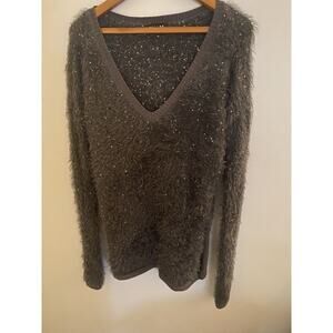 Trouve Women's Sweater Top Large Long Sleeve Gray Faux Fur Sequins
