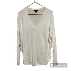 Trouve Women’s Tunic Long Sleeve V-Neck Blouse Sweater Cream Off White Sz Medium