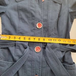 Trovata Anthropologie Pea Coat Button Down Belt Blazer Jacket XSmall 100% Cotton.