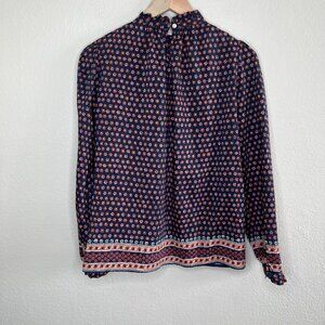 Trovata Bird Of Paradis Blue & Pink Floral Print Long Sleeve Silk Blouse Size M