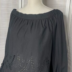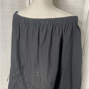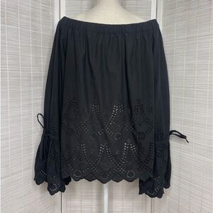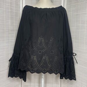 Trovata Birds Of Paradis Black Eyelet Long Sleeve Blouse Size S Off Shoulder