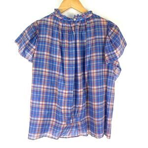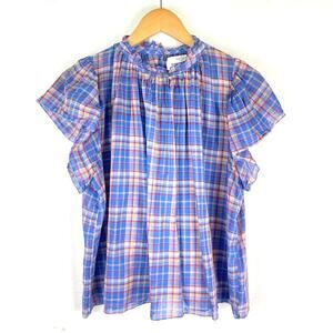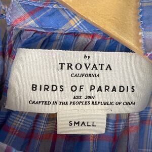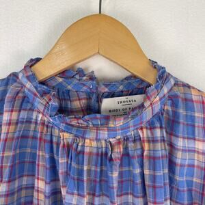 Trovata Birds Of Paradis Carla Highneck Montauk Plaid Shirt Blue Women's Small