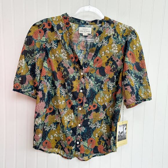 Trovata Birds Of Paradis Dakota Blouse Floral Deep Bramble Short Sleeve V Neck