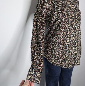 Trovata Birds Of Paradise Black Peach Floral Corduroy Long Sleeve Button Up S. Cottagecore, fairy ditsy. Black, peach, pink, green.