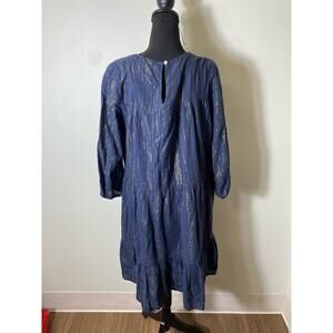 Trovata Birds of Paradis Blue Knee Length A-Line Dress Sz M
