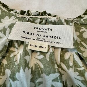 Trovata Birds of Paradis XS Green Floral Blouse Top
