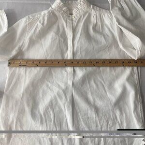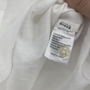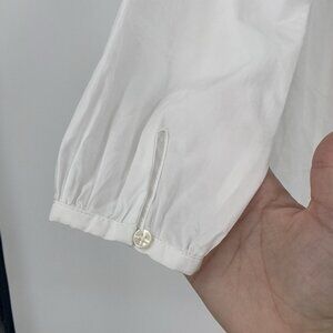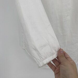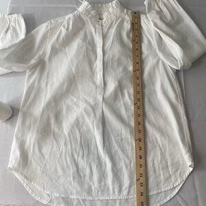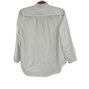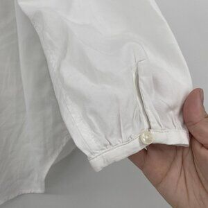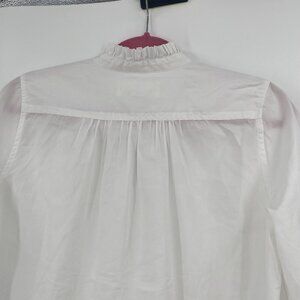 Trovata Birds of Paradis XS White Valentina Notch Neck Poplin 1/4 button front V-Neck Top Long Sleeve
