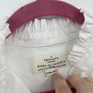 Trovata Birds of Paradis XS White Valentina Poplin V-Neck Top Ruffle Collar
