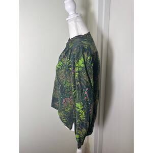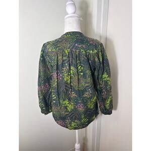 Trovata Birds of Paradise Green Floral Long Sleeve V-Neck Shirt Sz XS