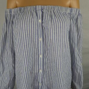 Trovata Birds of Paradise Striped Off the Shoulder Button Front Blouse Large