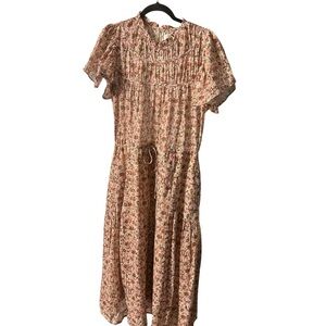 Trovata Flutter Sleeve Orange Pink Midi Dress