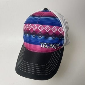 Troxel Trucker Hat Cap Aztec Print Black Pink Blue White Equestrian Horse Riding. It is pre owned in good used condition with some wear.