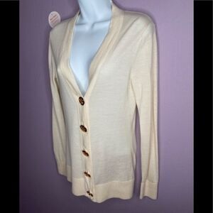 Troy Burch Simone V-Neck Cream Gold Fall Winter Spring Summer Cardigan Sz XS
