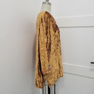 NWT TRU LUXE JEANS Women's Embroidered V-neck Bronze Velvet Top Size XL 3/4 hemmed cuff high low hem