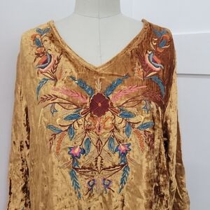 Tru Luxe Jeans Women's Embroidered V-neck Bronze Velvet Top Size XL