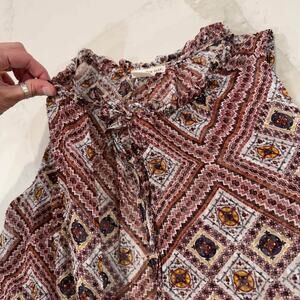 Tru Self Boho Print Lace Navy Open Tie Front Tunic Vest Women's Small Indie Boho