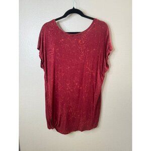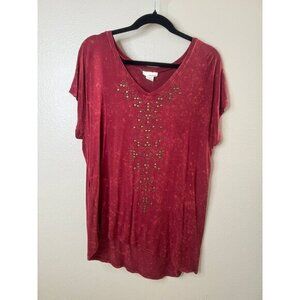 Tru Self Women's Red Blouse Size X-large short sleeve v-neck rayon long shirt
