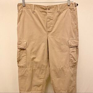 Tru-Spec Size Med Regular Cargo Pants, Tan, Rip Stop Fabric, Tactical / Hunting / Hiking / Fishing. Preowned. Nice condition. Waist adjustable 31”-35”. Inseam adjustable 29.5”-32.5”. Sturdy and comfortable cargo pants! 100% Cotton.