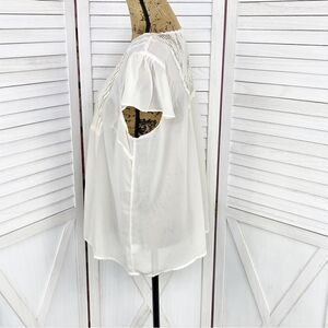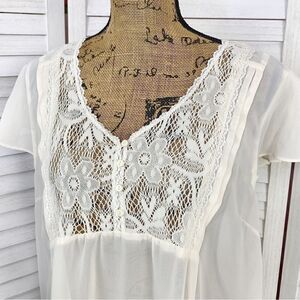 Truce Chiffon Lace Sheer Flutter Sleeve Blouse Cream Large