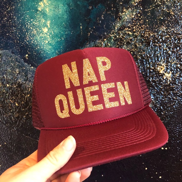 Nap queen trucker hat gold glitter vinyl on maroon hat new