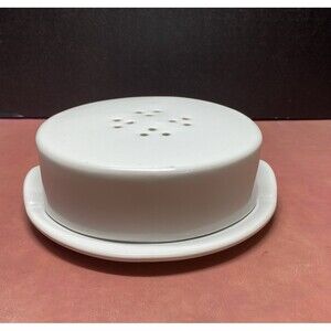 Trudeau Cheese Brie Baker Round Container Stoneware Server Keeper Vented Holes