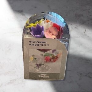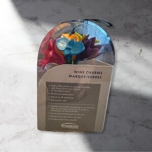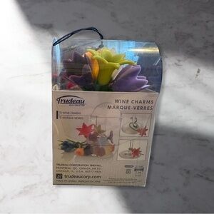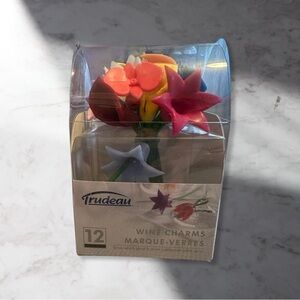 New, never used set of 12 Trudeau floral silicone wine charms/glass markers.