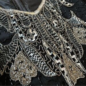 True 80’s Vintage AVENUE 7 CONTINENTAL FASHIONS INC Black Silk Heavy Beading S