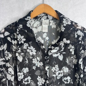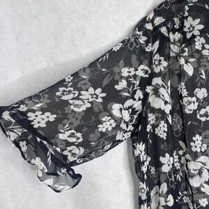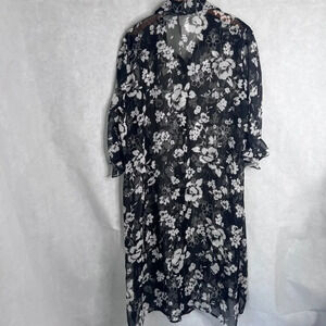 True Beauty Black Floral Sheer 3/4 Sleeve Button Front Kimono Cardigan Size 16W