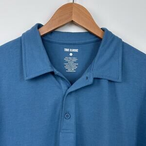 Size Large True Classic short sleeve polo in Indigo. Soft and stretchy fabric. Very nice blue color. Never worn!