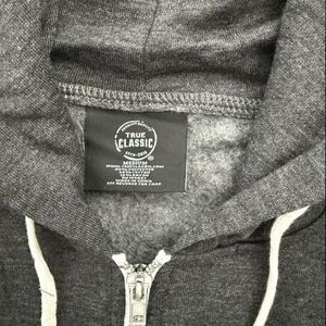 True Classic Grey Zip-Up Hoodie Zipper Sweatshirt Kangaroo Pockets Medium