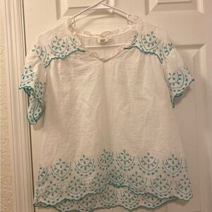 True Craft 100% cotton Short Sleeve Eyelet embroidered white Size Small
