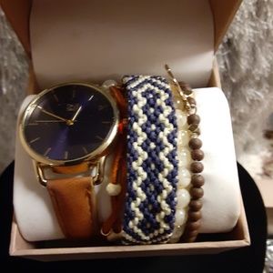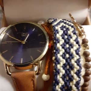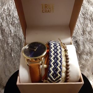 true Craft blue face/tan band/gold trim band bracelet watch set