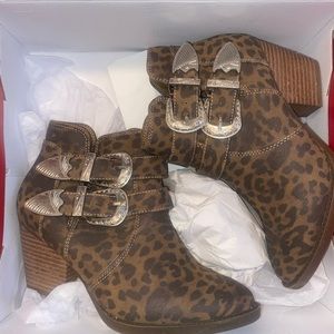 True Craft Leopard Print Booties Size 6 Buckle Detail