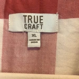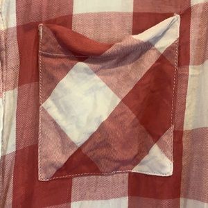Red and white plaid. Just needs to be ironed and it’s in great shape!