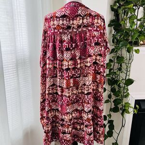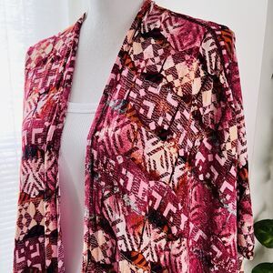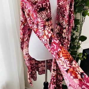 True Craft Colorful Floral Long Open Front Duster Wrap Aztec Southwestern OS