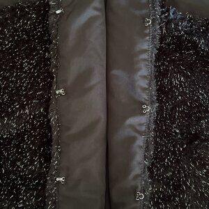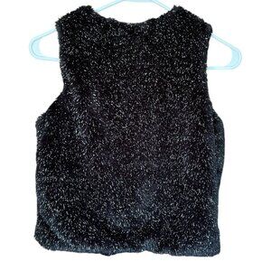 True Craft Girls Faux Youth Fur Vest Size L Black Silver Metallic Party Glam