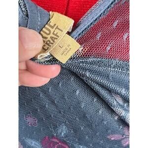 This is a True Craft floral dress for girls in size L. The dress features a round neck, half sleeves, and a pullover closure. It is knee-length and designed in an A-line style, perfect for party, casual, summer, fall, or spring occasions. The dress is adorned with a blue floral pattern, making it a charming choice for young fashionistas.