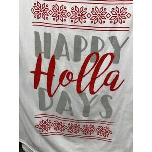 True Craft "Happy Holla Days" Crew Neck Holiday LS Tee T-Shirt White Womens L
