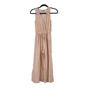 True Craft Juniors Size Small Peach White Striped Surplice Jumpsuit