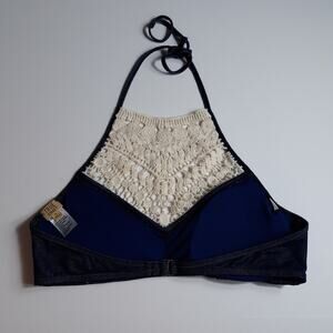 True Craft Junior's Swimsuit Top Bralette Size XL Blue Crochet Boho Swimwear